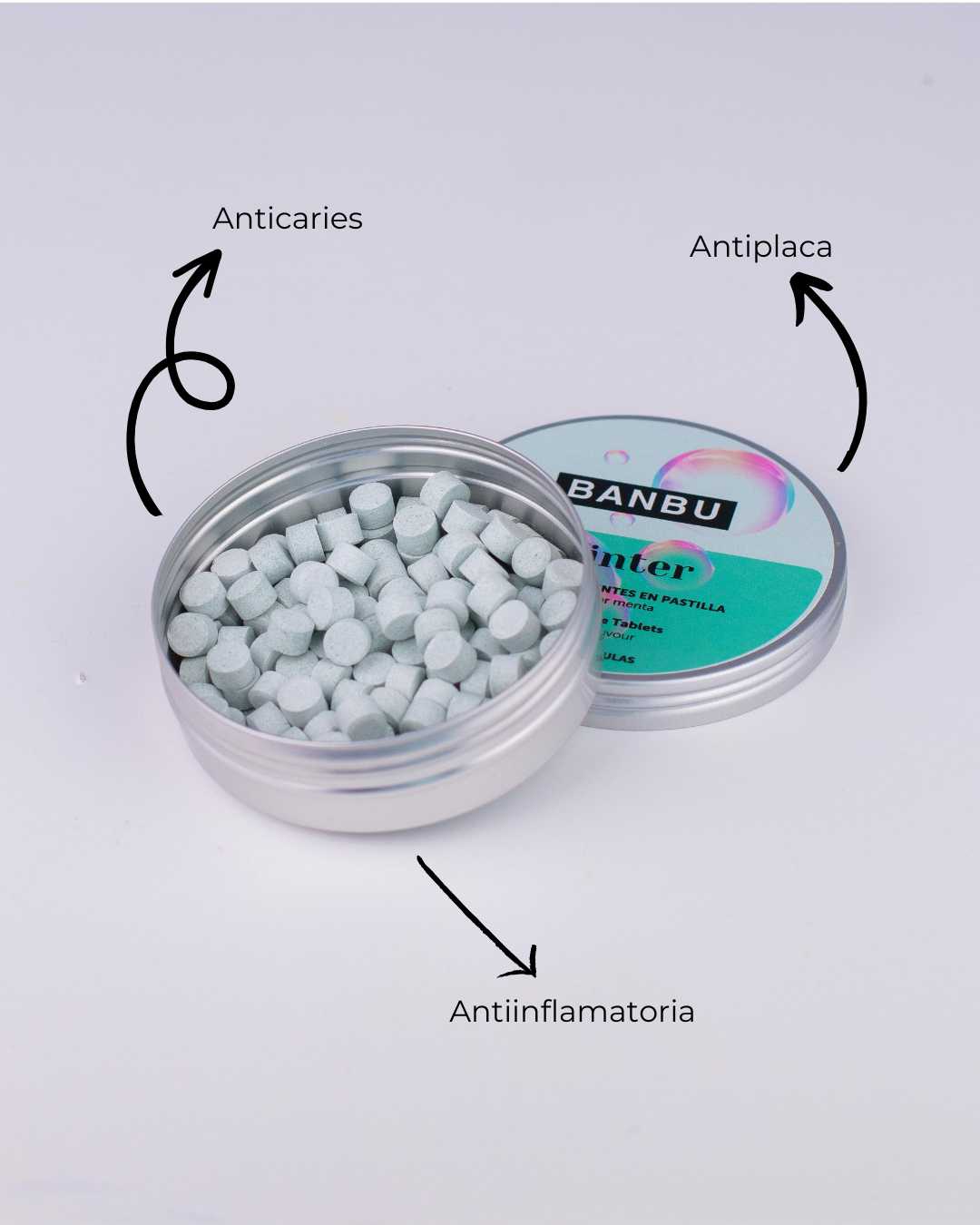 120 pastillas | Envase reutilizable | Fórmula vegana | Cruelty free | AntiCaries | antiinflamatoria | Sabor menta